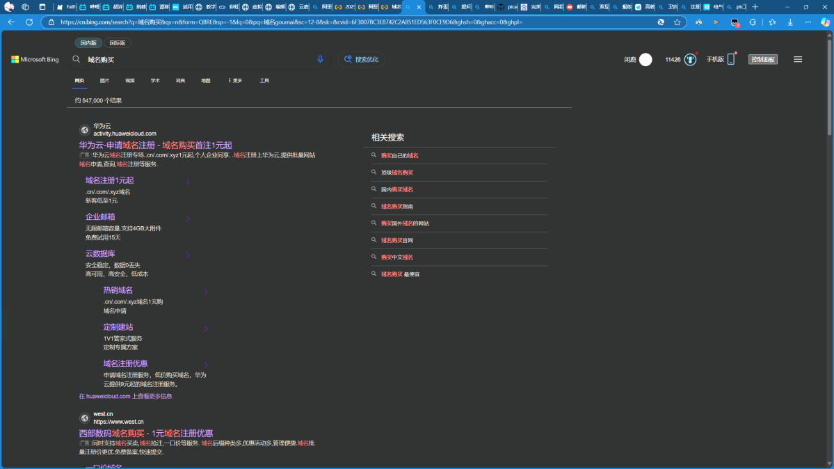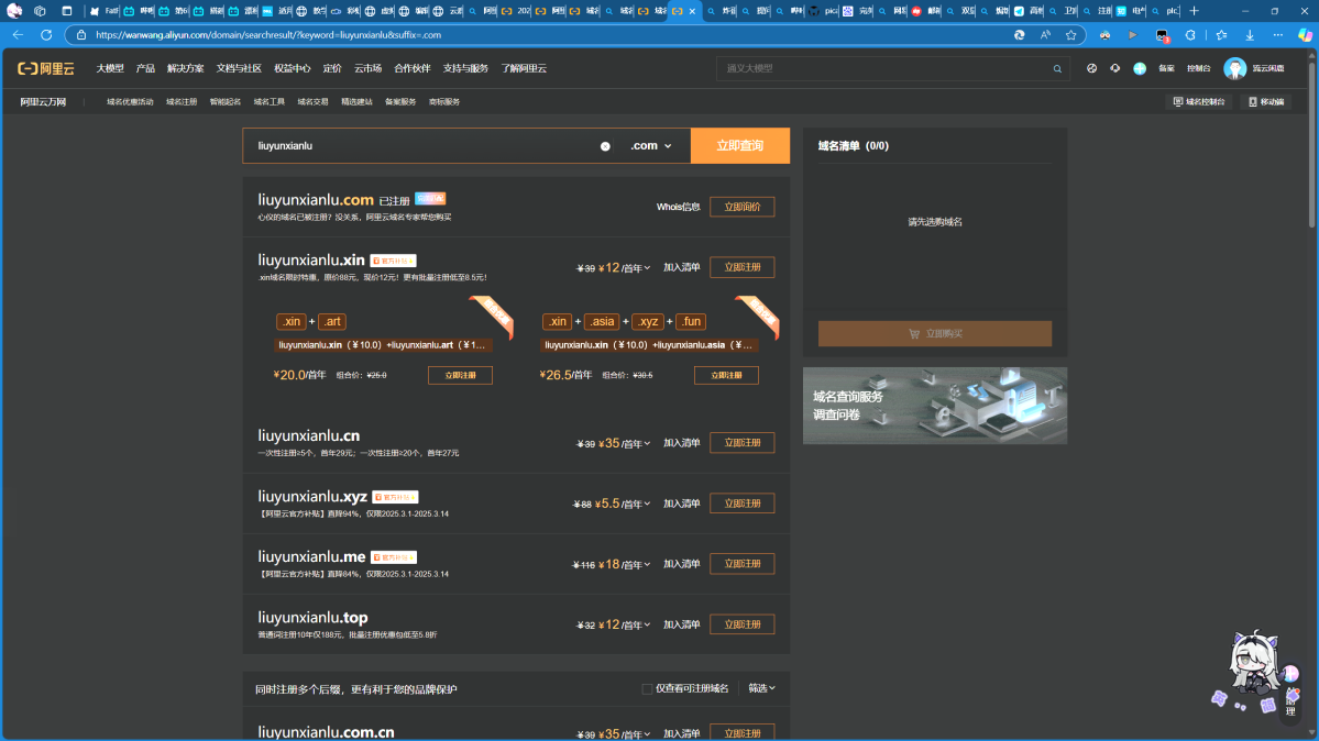 可以看到,一般.com后缀都是比较贵的