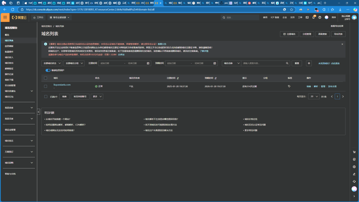 在确定了域名之后,在掏钱的同时还需要完成域名的注册,其中包括域名的实名和审核。需要如实填写个人信息,然后等大概两到三个小时。如果收到了短信,那么就代表审核成功了。