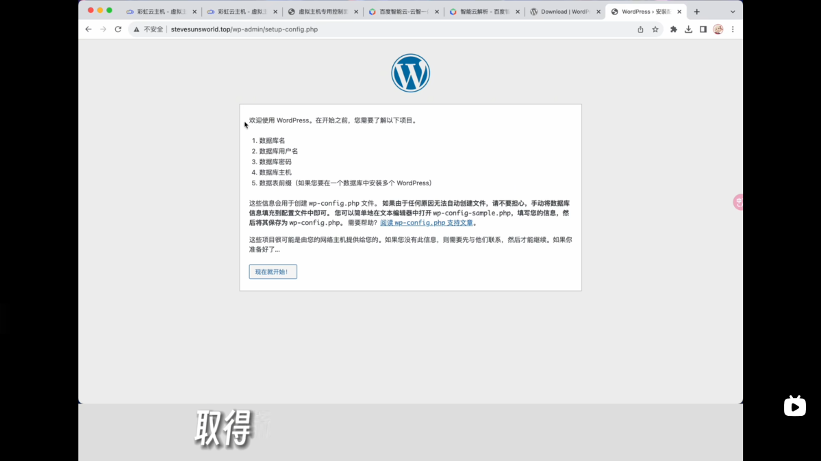 随后按照引导在服务器的面板里找到数据库用户和密码,以及数据库主机,在填完成后就可以跟着引导开始安装了。