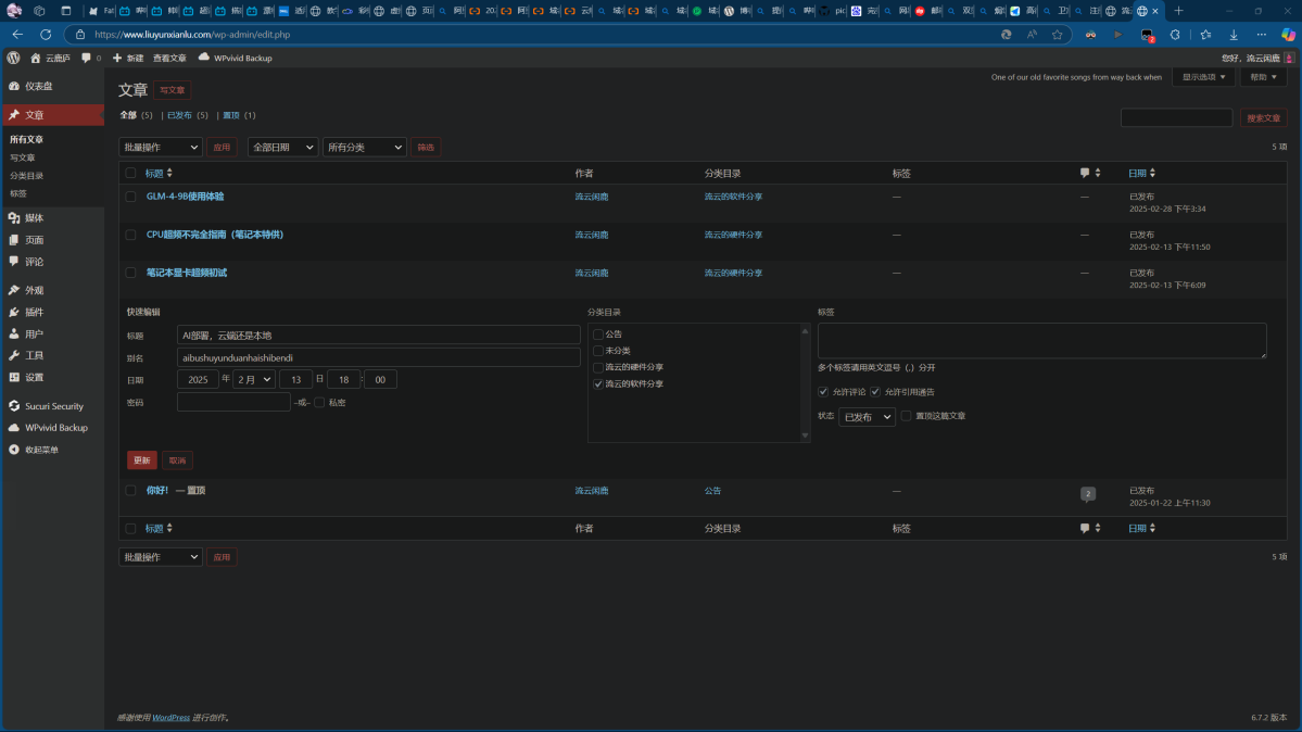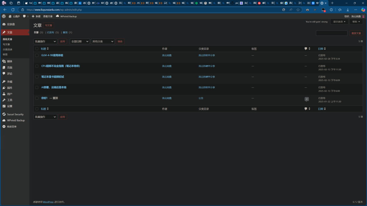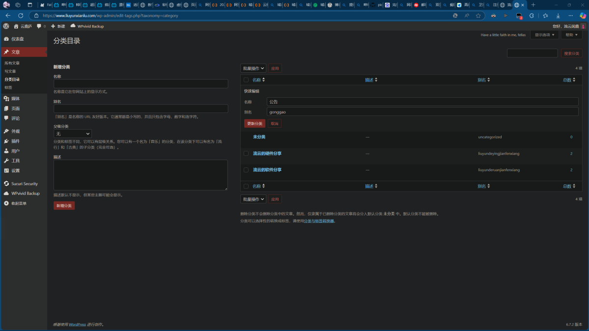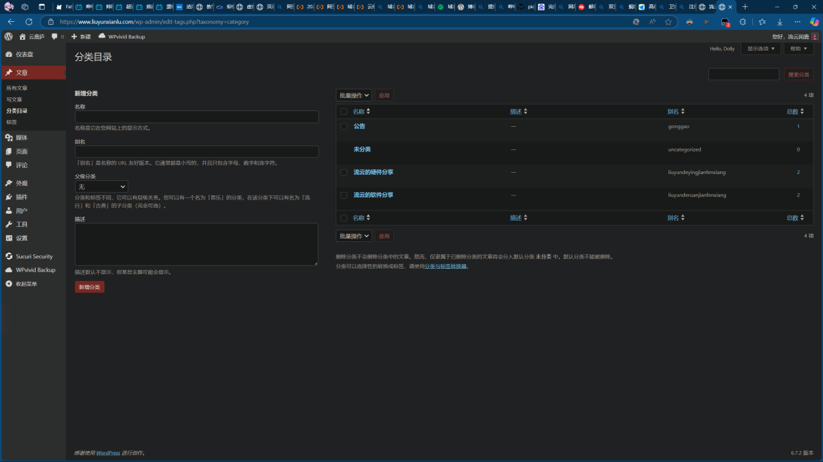 在这里,我们可以管理网站的文章以及撰写新的文章。在点击“文章”页面时,可以看到有一个“分类目录”的选项,在写文章或发布文章前,记得选择或创建合适的分类目录,这样有助于营造一个整齐的网站环境,更有利于搜索和阅读。