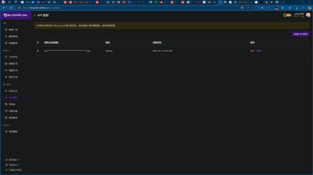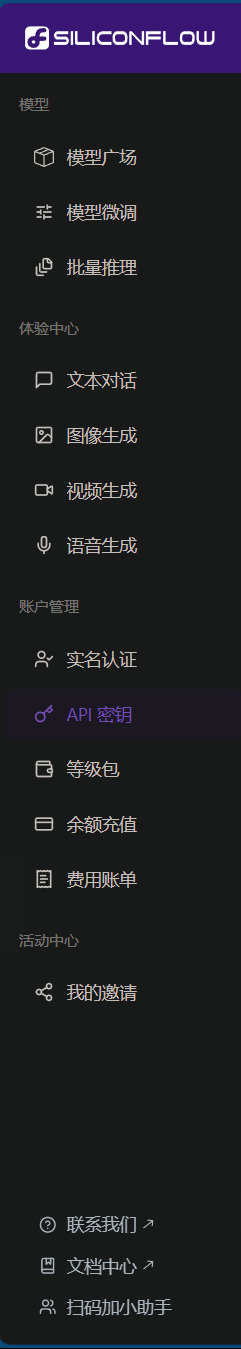在这篇教程中我将以申请硅基流动的API为例,理由是有免费额度(省钱)。首先打开硅基流动的网站,完成账号注册后进行实名认证。