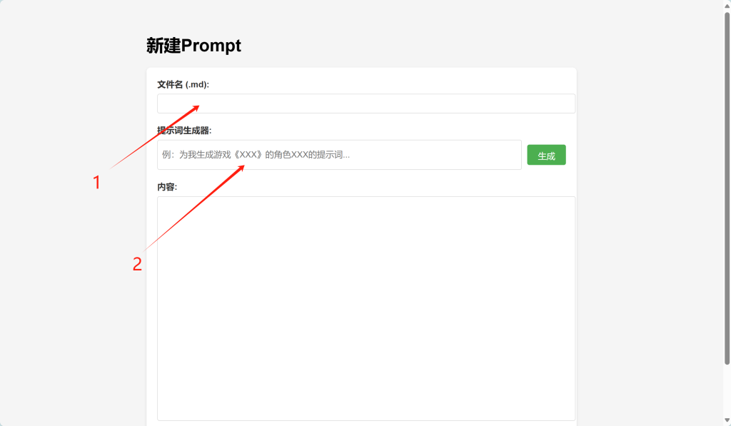 文件名可以理解为人设的名字,根据你的需求或者爱好输入提示词,AI会生成对应的描述词,觉得不满意也可以在内容栏里修改。